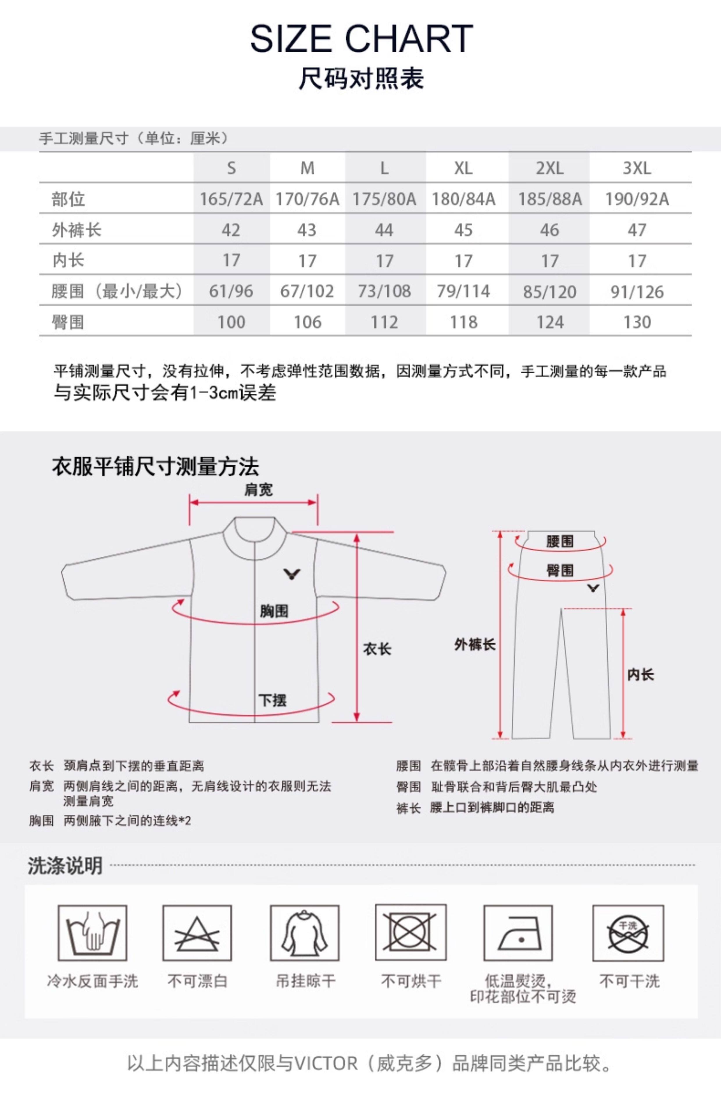 China (cm) 165 / 88-90 170 / 96-98 175 / 108-110 180 / 118-122 185 / 126-130